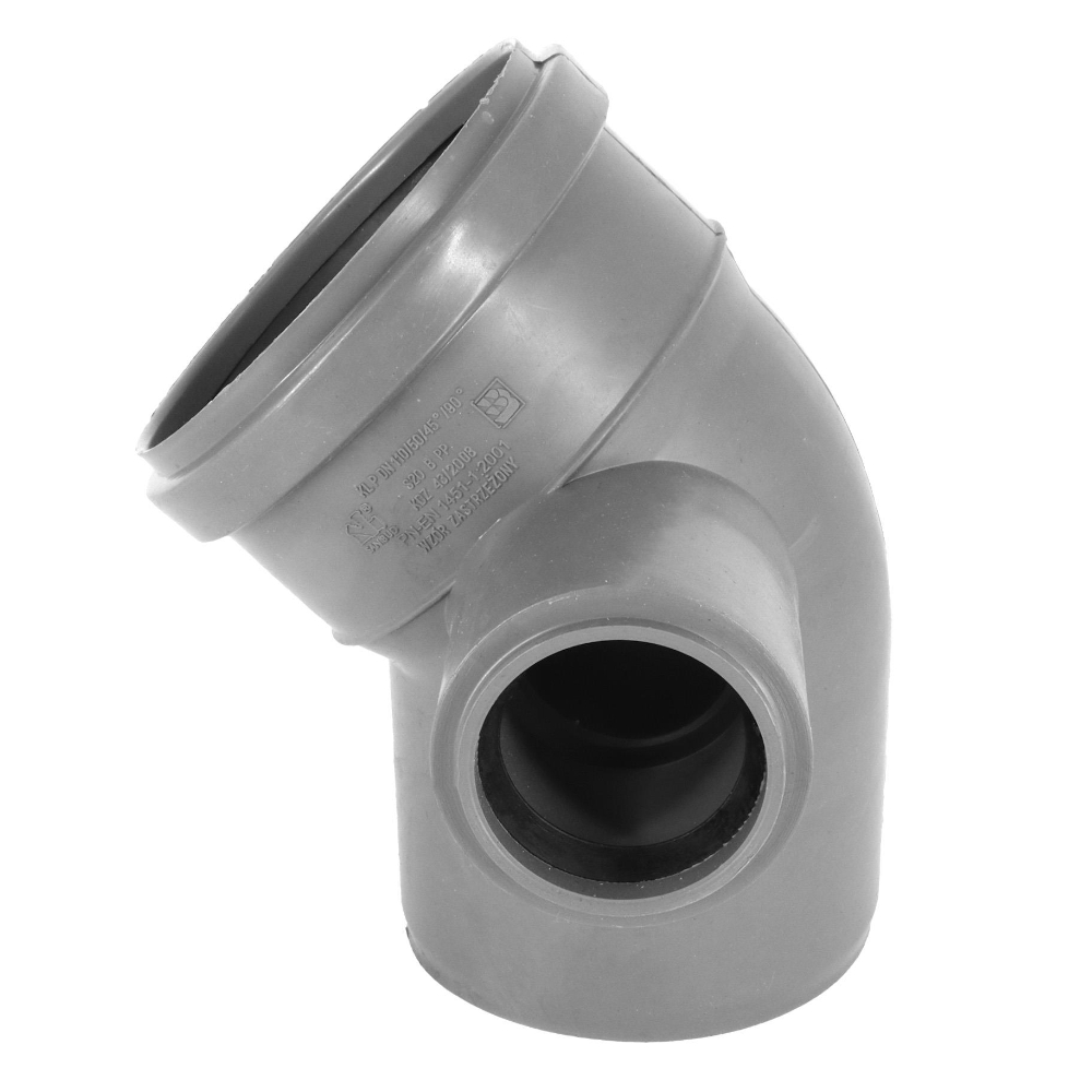 Przeznaczone do łączenia rur kanalizacyjnych pod kątem 45°, odprowadzające nieczystości wewnątrz budynku. Prawe odejście kolana umożliwia podłączenie dodatkowych elementów instalacji.
