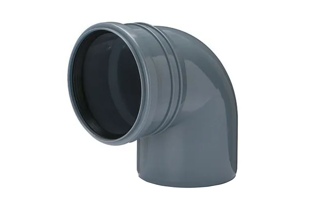 Kolano kanalizacyjne wykonane z polipropylenu (PP) w kolorze szarym fi 110 x 90°