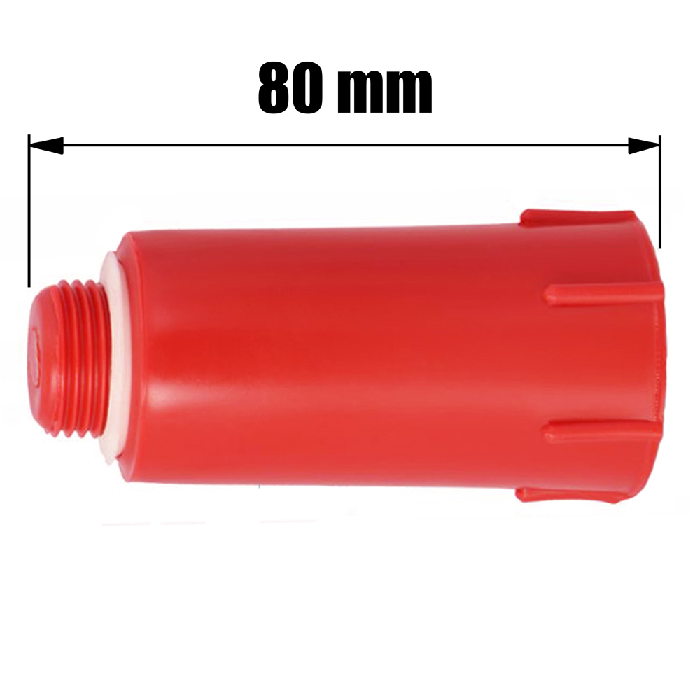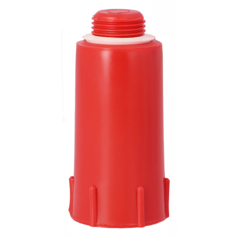 Korek do przeprowadzania prób szczelności instalacji wodnych, z uszczelką, w kolorze czerwonym.