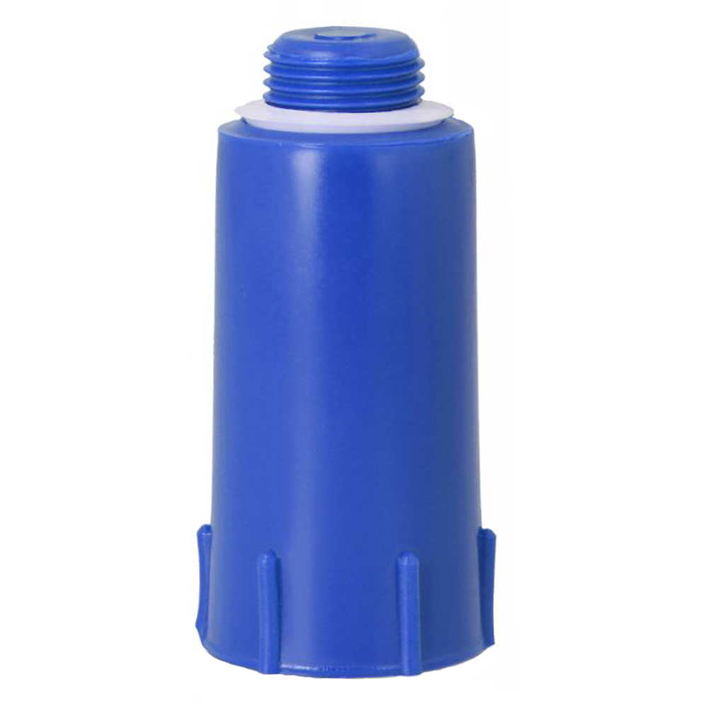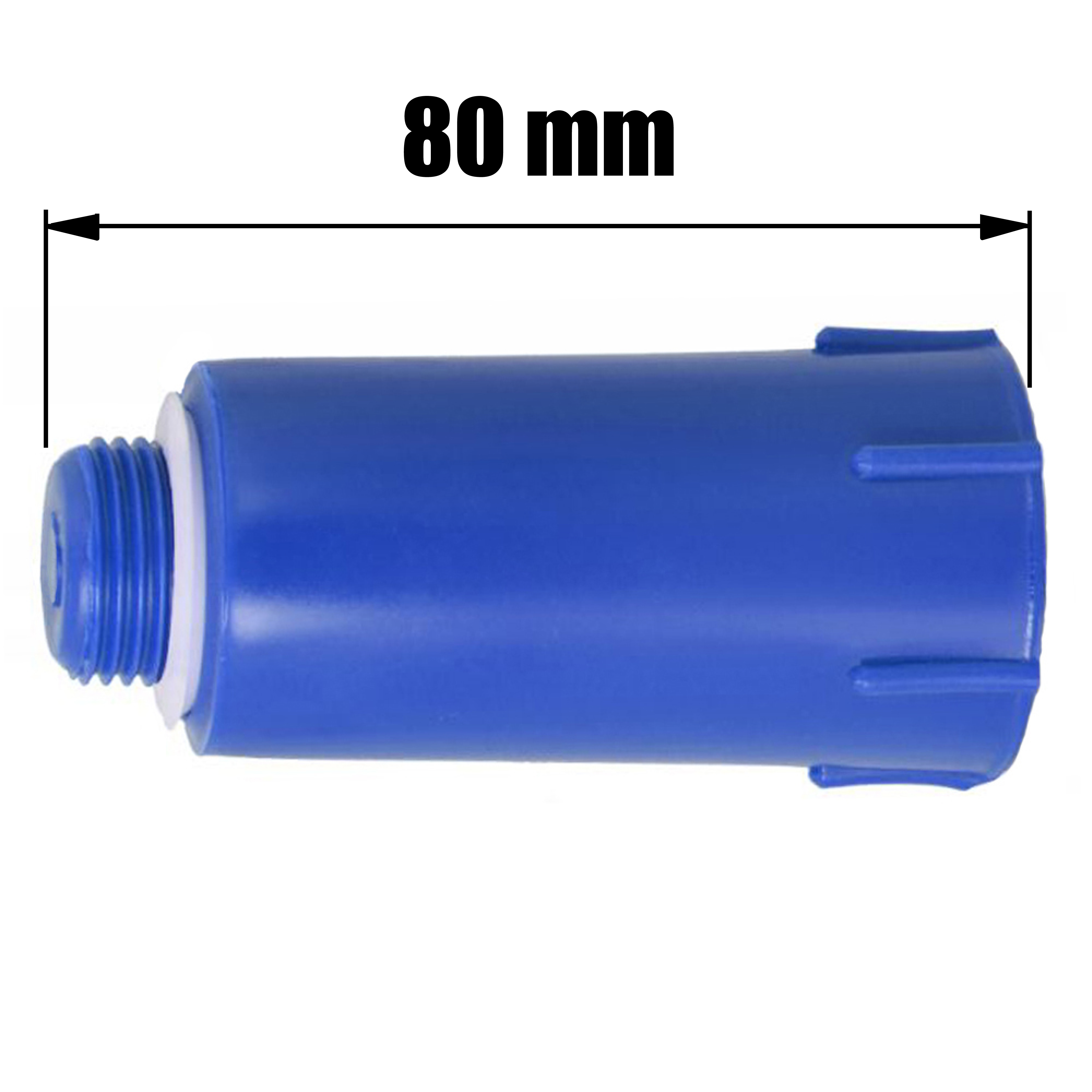 Korek do przeprowadzania prób szczelności instalacji wodnych, z uszczelką, w kolorze niebieskim.