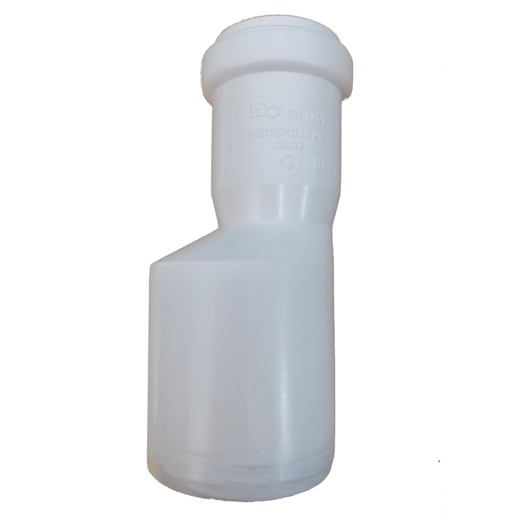 Redukcja kanalizacyjna prosta, asymetryczna wykonana z polipropylenu (PP) w kolorze białym fi 50/32