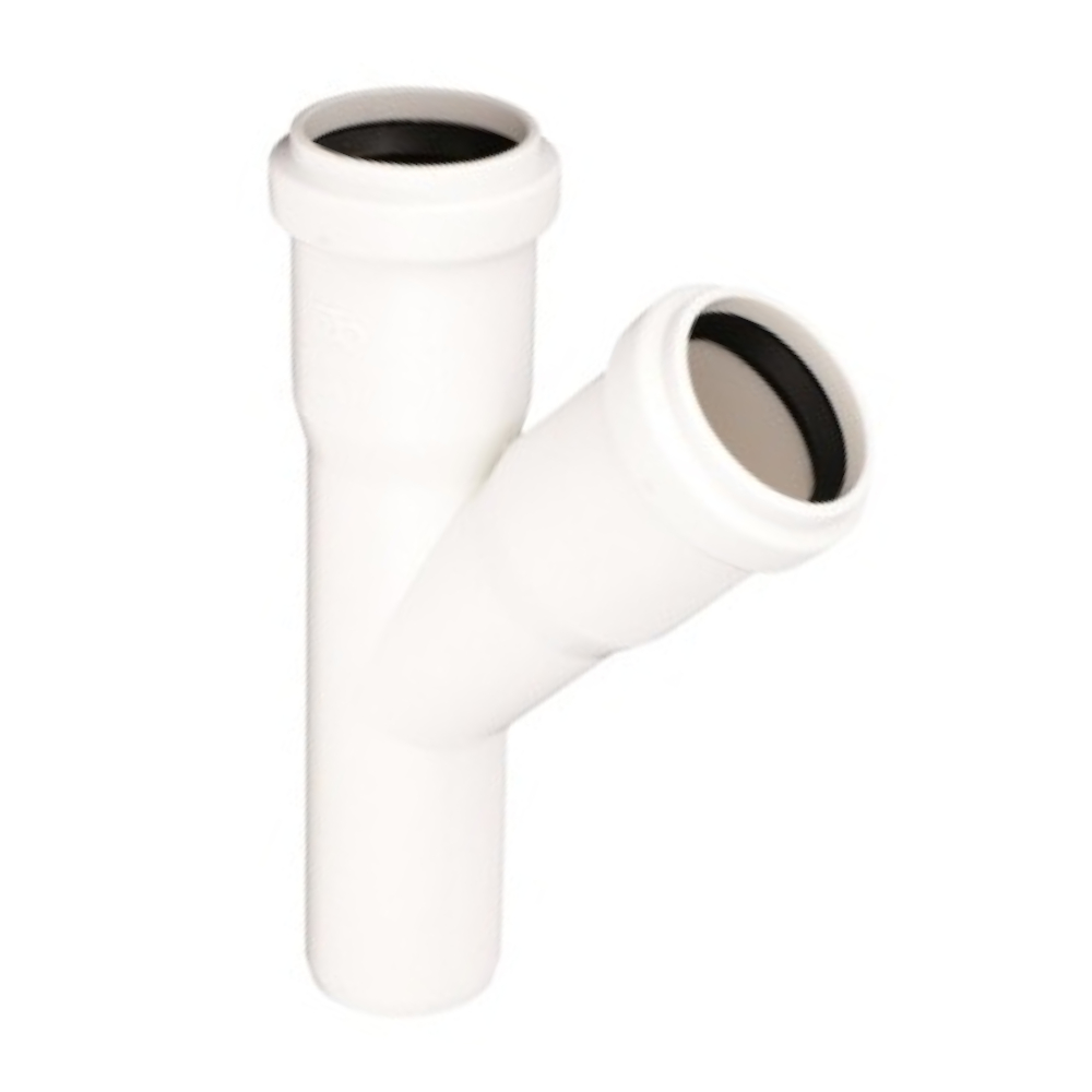 Trójnik kanalizacyjny wykonany z polipropylenu (PP) w kolorze białym fi 32 x 32 x 45°