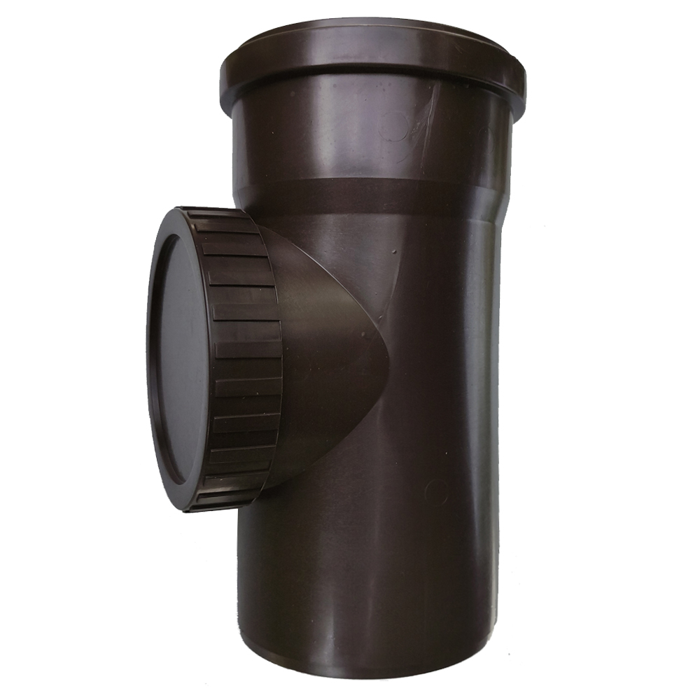 Czyszczak, rewizja kanalizacyjna, wykonana z polipropylenu (PP) w kolorze ciemnobrązowym fi 110.